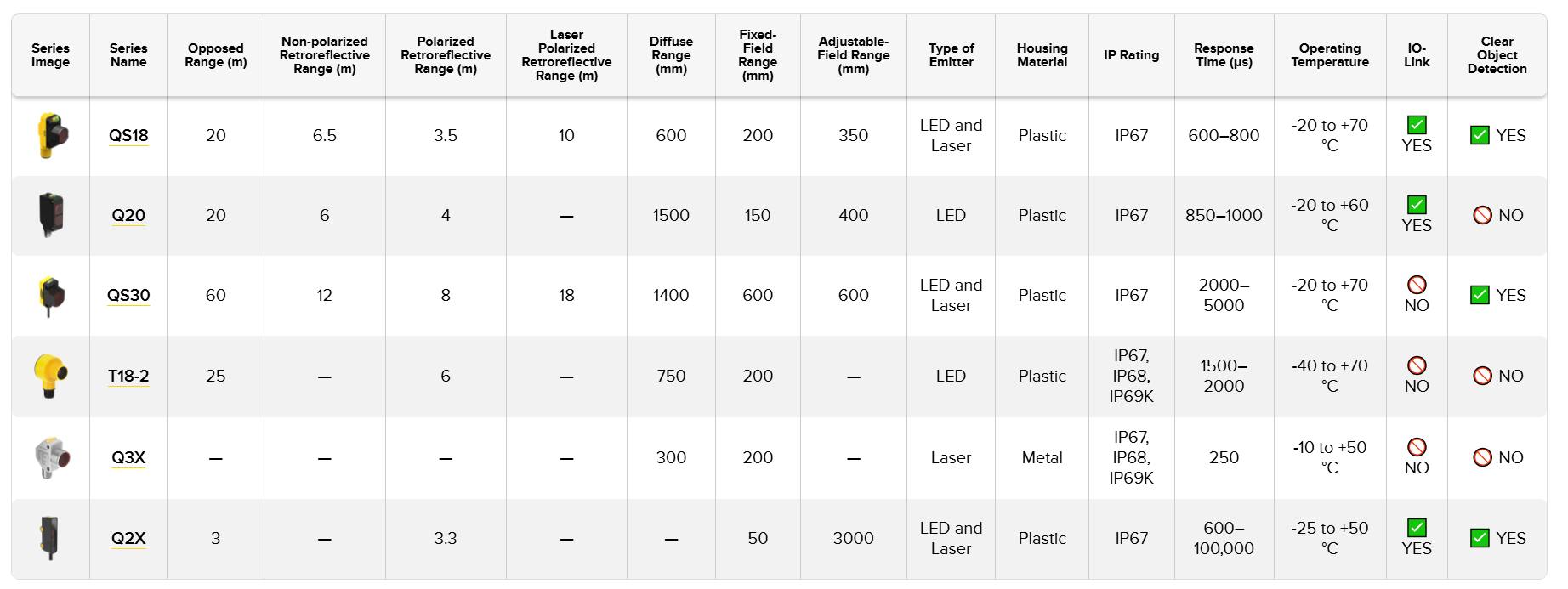 Los sensores fotoeléctricos de Banner utilizan luz para detectar la presencia, posición y tamaño de objetos con alta precisión. Disponibles en diversos modos de detección como opuesto, retrorreflectivo, difuso y con supresión de fondo, son ideales para aplicaciones de ensamblaje y clasificación de productos.